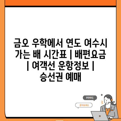 여수시의 매력과 함께, 금오우학에서 여수시로의 편리한 여객선 여행을 만끽하십시오!