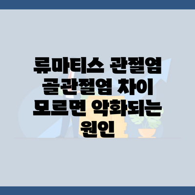 A1: 류마티스 관절염은 자가면역 질환으로 염증과 변형을 유발하며, 골관절염은 퇴행성 질환으로 주로 통증과 뻣뻣함을 초래합니다.
