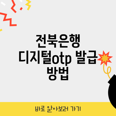 전북은행에서 디지털 OTP를 발급받는 방법은 간단해요. 다음 단계를 따라하면 누구나 쉽게 발급 받을 수 있습니다.