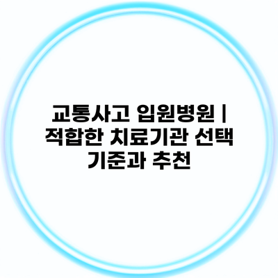 교통사고로 인한 부상은 종종 방심할 수 없을 정도로 심각한 경우가 많습니다. 따라서 입원할 병원의 선택은 치료의 질에 큰 영향을 미칠 수 있어요. 적절한 병원 선택은 신속한 회복과 재활을 도와주기 때문이죠.