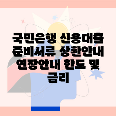 신용대출은 많은 사람들이 자금을 조달하는 데 중요한 역할을 하고 있죠. 특히 국민은행의 신용대출 서비스는 그 다양한 혜택과 유연한 조건으로 큰 인기를 끌고 있어요. 이번 포스팅에서는 국민은행 신용대출의 준비서류, 상환안내, 연장안내, 한도 및 금리에 대해 자세히 살펴보고자 해요.