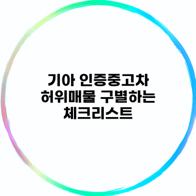 중고차 구매는 항상 신중해야 하는 과정이에요. 특히 기아 인증중고차와 같은 특별한 차량 역시, 허위매물로 인한 피해를 입지 않도록 주의가 필요하죠. 이번 포스트에서는 기아 인증중고차의 허위매물을 구별하기 위한 체크리스트를 제공할게요. 이 글이 여러분에게 많은 도움이 될 것이에요.