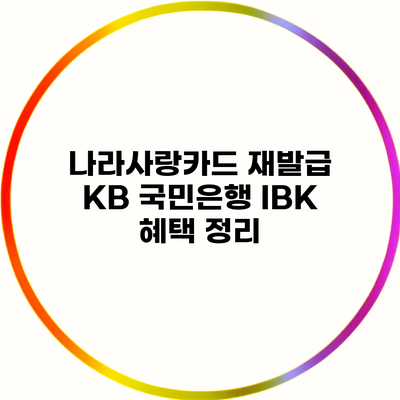 나라사랑카드는 대한민국의 다양한 공공기관 및 여러 금융기관에서 제공하는 특별한 카드에요. 이 카드는 단순한 결제수단을 넘어 다양한 혜택을 제공하죠. 오늘은 나라사랑카드의 재발급 방법과 KB 국민은행 및 IBK의 각종 혜택에 대해 자세히 알아볼게요.