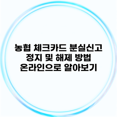 농협 체크카드 분실 시 대처 방법을 지금 바로 알아보세요.