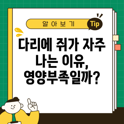 다리에 쥐가 자주 나는 이유는 많은 사람들이 궁금해하는 중요한 주제입니다. 그런 경험이 있을 때마다 불편함을 느끼고, 그 원인에 대해 골똘히 생각하게 되죠. 다리에 쥐가 자주 발생하는 것은 여러 가지 요소가 복합적으로 작용할 수 있기 때문에 우리는 그 정보를 종합적으로 알아볼 필요가 있습니다. 여기서는 영양 부족과 함께 다리에 쥐가 생기는 다양한 원인과 해결 방법에 대해 알아보겠습니다.