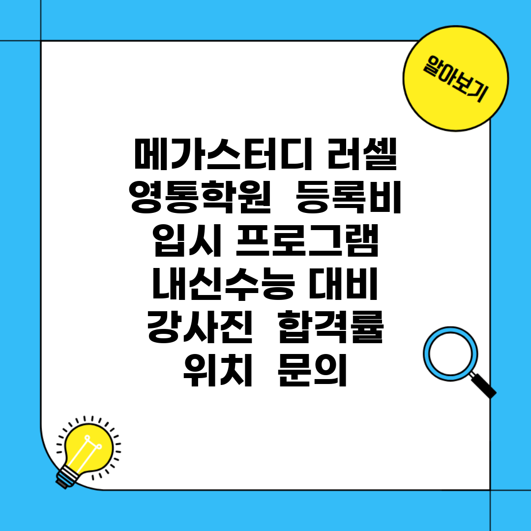 메가스터디 러셀 영통학원 | 등록비 | 입시 프로그램 | 내신/수능 대비 | 강사진 | 합격률 | 위치 | 문의에 대해 알아보겠습니다.
