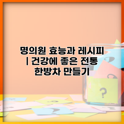 ✅ 명의원으로 만드는 건강한 전통 한방차 레시피를 알아보세요.