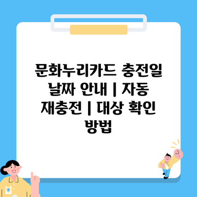 ✅ 문화누리카드의 자동 재충전 방법을 지금 바로 알아보세요.
