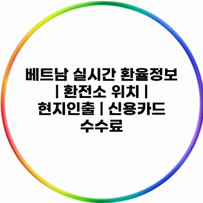 여행을 떠나기 전에는 항상 준비가 필요해요. 베트남에서의 환율 정보와 환전소, 현지 인출 방법, 신용카드 수수료를 미리 알아두면 경비를 절약하고 더욱 즐거운 여행을 할 수 있어요. 주요 환전소와 환율 정보를 확인해보고, 적절한 시점에 환전을 하세요. 이렇게 하면 여러분의 베트남 여행이 좀 더 편안하고 쾌적해질 것입니다.