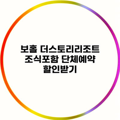 Q1: 보홀 더스토리리조트에서 단체예약 시 받을 수 있는 할인 혜택은 무엇인가요?