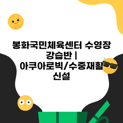 봉화국민체육센터에서는 아쿠아로빅과 수중재활을 동시에 진행하는 강습반이 개설되며, 다음과 같은 정보들이 있습니다.