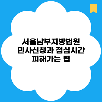 법원을 방문하다 보면 점심시간이 문제가 될 수 있어요. 서울남부지방법원의 점심시간은 보통 12시부터 1시까지이므로, 이 시간대에는 법원이 폐쇄되어 있어 소송신청이 어렵죠. 그렇기에 점심시간을 피해가는 몇 가지 팁을 소개할게요.