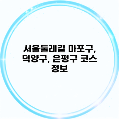 서울둘레길은 도심 속에서 자연을 만끽하며 걷는 최적의 장소로, 특히 마포구, 덕양구, 은평구의 코스는 그 매력이 넘치는 곳이에요. 이곳의 분위기와 경관은 걷는 이들의 마음을 편안하게 해줍니다. 오늘은 서울둘레길의 주요 코스를 자세히 알아보도록 할게요.