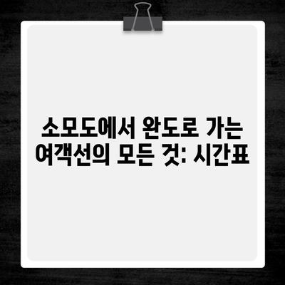 ✅ 소모도에서 완도로 가는 여객선의 시간표와 요금을 지금 바로 확인해 보세요.
