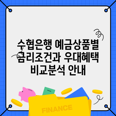 수협은행에서는 다양한 예금상품을 제공하고 있으며, 금리와 우대혜택이 상품에 따라 상이해요. 예금상품은 금리를 기반으로 선택하게 되며, 신규 고객과 기존 고객에 따라 혜택이 달라질 수 있으니 주의가 필요해요.