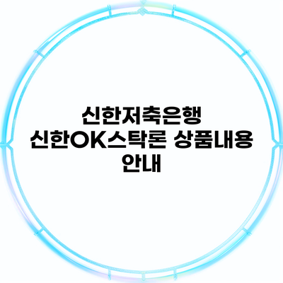 대출 상품을 고민할 때 많은 사람들이 신중하게 선택합니다. 신한저축은행의 신한OK스탁론은 많은 고객들 사이에서 인기가 높은 대출 상품 중 하나로, 여러분이 원하는 목표를 실현하는 데 큰 도움이 될 수 있어요. 이 글에서는 신한OK스탁론의 특징, 장점, 상품 내용에 대한 자세한 정보를 제공하겠습니다.