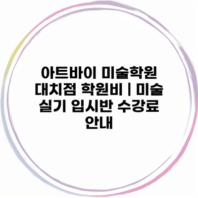 대치동 아트바이 미술학원은 미술 입시를 준비하는 학생들에게 최적의 환경을 제공하는 곳이에요. 수업비용과 내용이 세분화되어 있어 다양한 선택이 가능하고, 체계적인 교육 커리큘럼을 통해 입시에 대한 준비를 철저하게 할 수 있습니다. 미술로 꿈꾸는 여러분, 아트바이 미술학원과 함께 달려보세요! 여러분의 꿈을 현실로 만드는 데 큰 도움이 될 거예요.