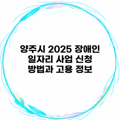 양주시 2025 장애인 일자리 사업, 신청 방법과 고용 정보 알아보기