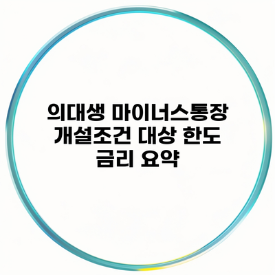 마이너스통장은 의대생에게 금전적으로 큰 도움을 줄 수 있는 유용한 금융상품이에요. 하지만 사용에 있어 신중함이 필요하며, 제시된 조건을 잘 이해하고 필요한 서류를 준비한 후에 개설하는 것이 좋습니다. 은행과의 상담을 통해 본인에게 가장 유리한 조건을 찾아보세요. 필요한 자금을 효율적으로 관리하고, 불필요한 이자 부담 없이 학업에 집중할 수 있는 방법이 될 것입니다. 지금 바로 자신의 상황을 점검하고 적절한 금융상품을 선택해보세요!