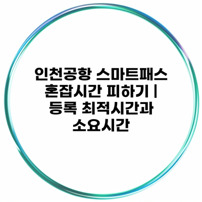인천공항의 스마트패스를 통해 혼잡한 시간을 피해 보세요. 적절한 등록 시간과 출발 시기를 선택하면, 공항에서의 스트레스를 크게 줄일 수 있습니다. 여행은 즐거운 경험이어야 하니, 스마트패스를 적극 활용하여 편안한 출발을 준비하세요. 여행의 시작은 즐거워야 하니까요!