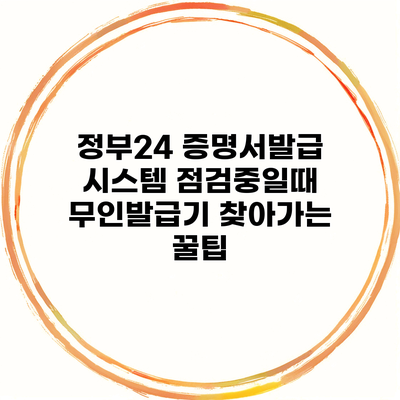 정부24 서비스는 많은 사람들이 일상에서 필요한 다양한 증명서를 발급받을 수 있는 편리한 시스템이에요. 그러나 가끔씩 시스템 점검으로 인해 증명서 발급이 어려운 상황이 발생할 수 있습니다. 이럴 때 유용하게 활용할 수 있는 방법인 무인 발급기를 활용하는 꿀팁을 소개해 드릴게요.