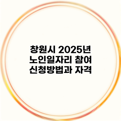 ✅ 창원시 2025년 노인일자리 참여 조건을 궁금하시다면 클릭하세요!