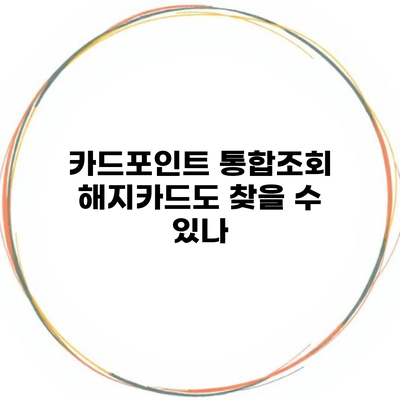 카드포인트 관리는 생각보다 복잡할 수 있어요. 다양한 카드에서 포인트를 관리하고 정리하는 일이 만만치 않기 때문이죠. 하지만 카드포인트 통합조회 서비스를 통해 이러한 문제를 간편하게 해결할 수 있답니다. 이제 이 서비스를 이용해 카드포인트를 통합적으로 조회하고, 동시에 해지된 카드 포인트도 모두 확인해보는 방법에 대해 알아볼까요?