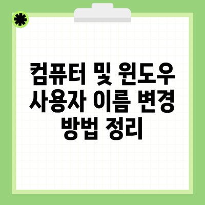 컴퓨터 및 윈도우 사용자 이름 변경 방법 완벽 가이드