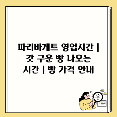 A1: 파리바게트의 영업시간은 일반적으로 오전 7시부터 오후 10시까지이며, 매장에 따라 다를 수 있습니다.