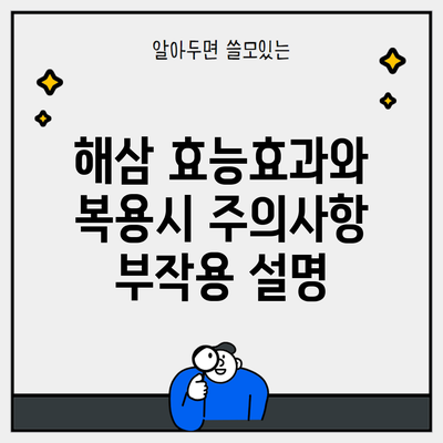 해삼은 건강에 좋다고 알려진 바다의 보물 중 하나입니다. 많은 사람들이 해삼을 식탁에 올리며 그 효능을 믿고 있습니다. 하지만 해삼의 효능뿐만 아니라 복용 시 주의해야 할 사항과 부작용에 대해서도 정확히 알고 있어야 합니다. 이 글에서는 해삼의 다양한 효능과 함께 복용할 때 유의해야 할 점들을 자세히 다뤄보겠습니다.