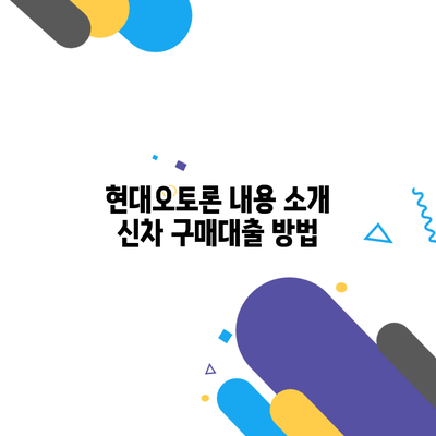 현대오토론 내용 소개 신차 구매대출 방법