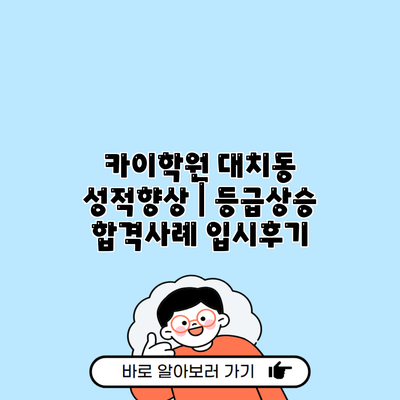 대치동 성적향상: 카이학원의 비밀 대치동의 카이학원에서 성적이 향상되었다는 이야기를 듣고, 많은 학부모와 학생들이 호기심을 가질 텐데요. 이곳에서 성적 향상을 이루어낸 사례는 단순한 우연이 아닙니다. 다양한 학습 전략과 맞춤형 교육이 이러한 성과를 만들어내고 있어요. ✅ 카이학원의 성공적인 성적 향상 사례를 직접 확인해 보세요. 👉 성적 향상 사례 보기 카이학원 소개 카이학원은 대치동의 중심부에 위치하여, 학습 분위기가 … Read more