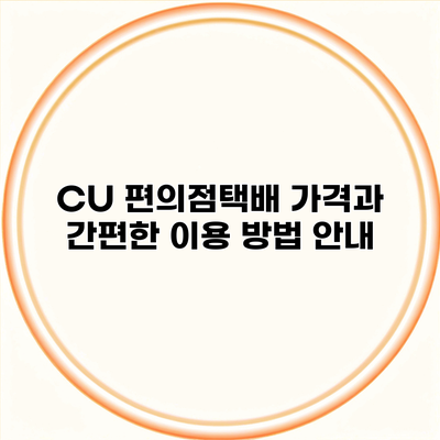 ✅ CU 편의점택배의 가격과 이용 방법을 쉽게 알아보세요.