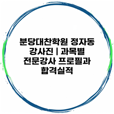 ✅ 분당대찬학원의 입시실적을 지금 바로 확인해 보세요! 👉 합격자 현황 분석하기 분당대찬학원 정자동 강사진: 과목별 전문 강사와 합격 실적의 모든 것 분당대찬학원 정자동의 강사진은 대한민국에서 학습 성과를 이끌어내는 전문가들로 구성되어 있어요. 이제 학생들이 원하는 맞춤형 교육을 받을 수 있어, 많은 학부모와 학생들이 떠올리는 학원이 되었답니다. 특히 강사진의 전문성과 그들이 쌓은 합격 실적은 학원 선택에 큰 … Read more
