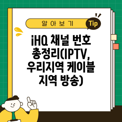 iHQ 채널 번호 총정리(IPTV, 우리지역 케이블 지역 방송)